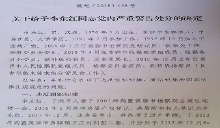 主办赵恩亭案的原黄骅检察院反贪局长李东红严重违纪违法被处分