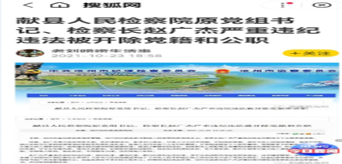 主办赵恩亭案的原黄骅市检察长赵广杰严重违纪违法被双开